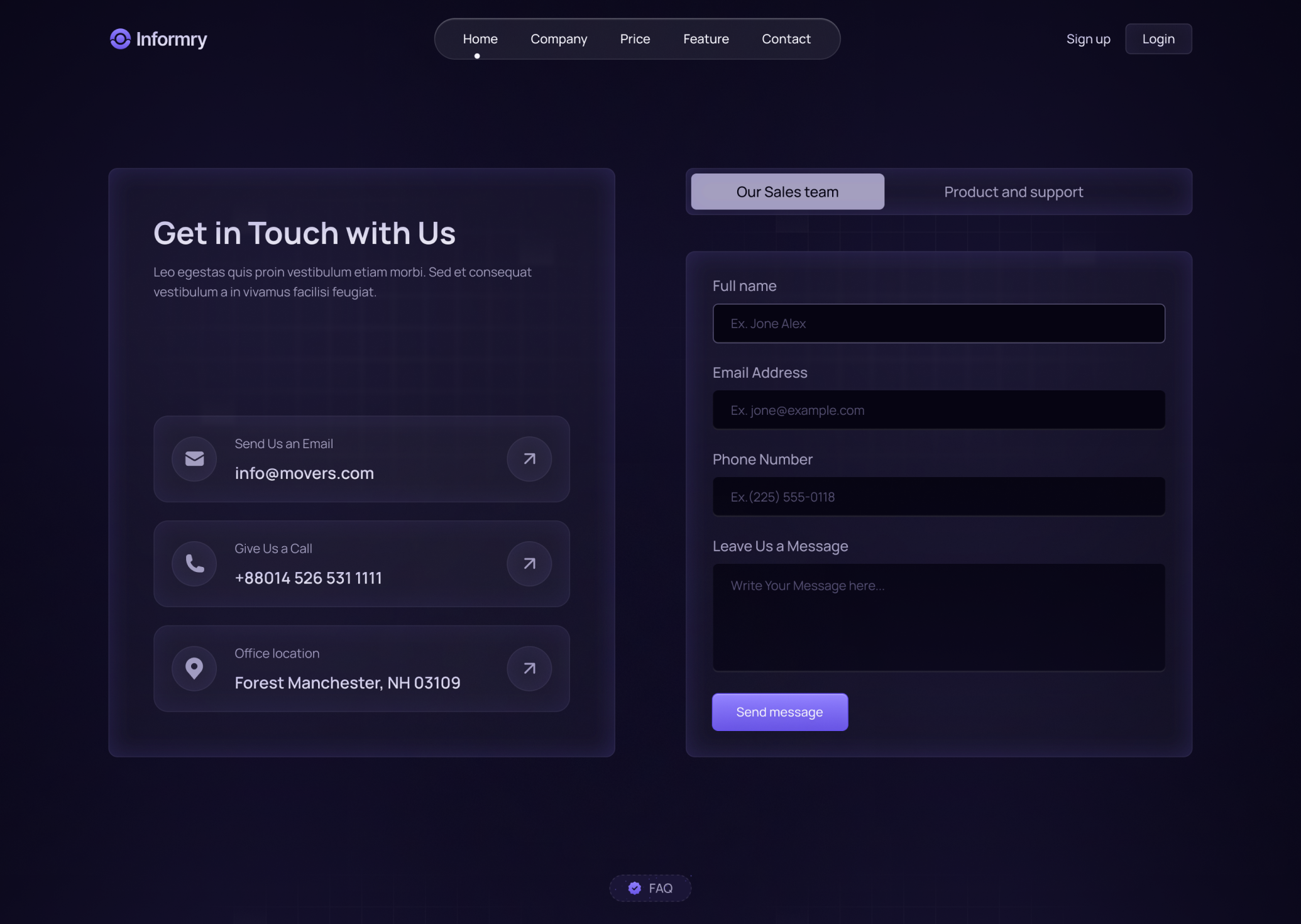 • FAQ page