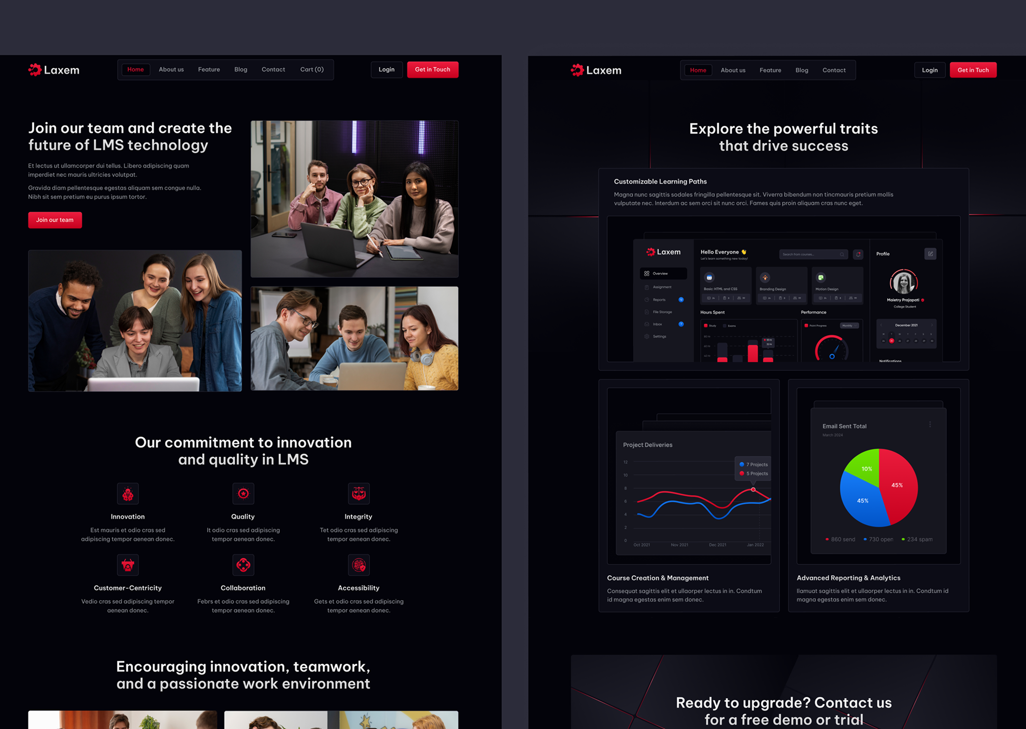 Laxem is the top Webflow template designed for top tech and SaaS companies. It provides all the essential tools for effective LMS management and a professional website. As the SaaS industry grows, Laxem will be your perfect partner in realizing your vision.