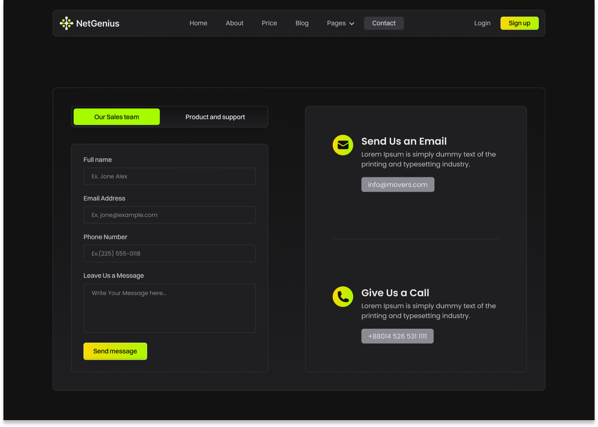- Contact page