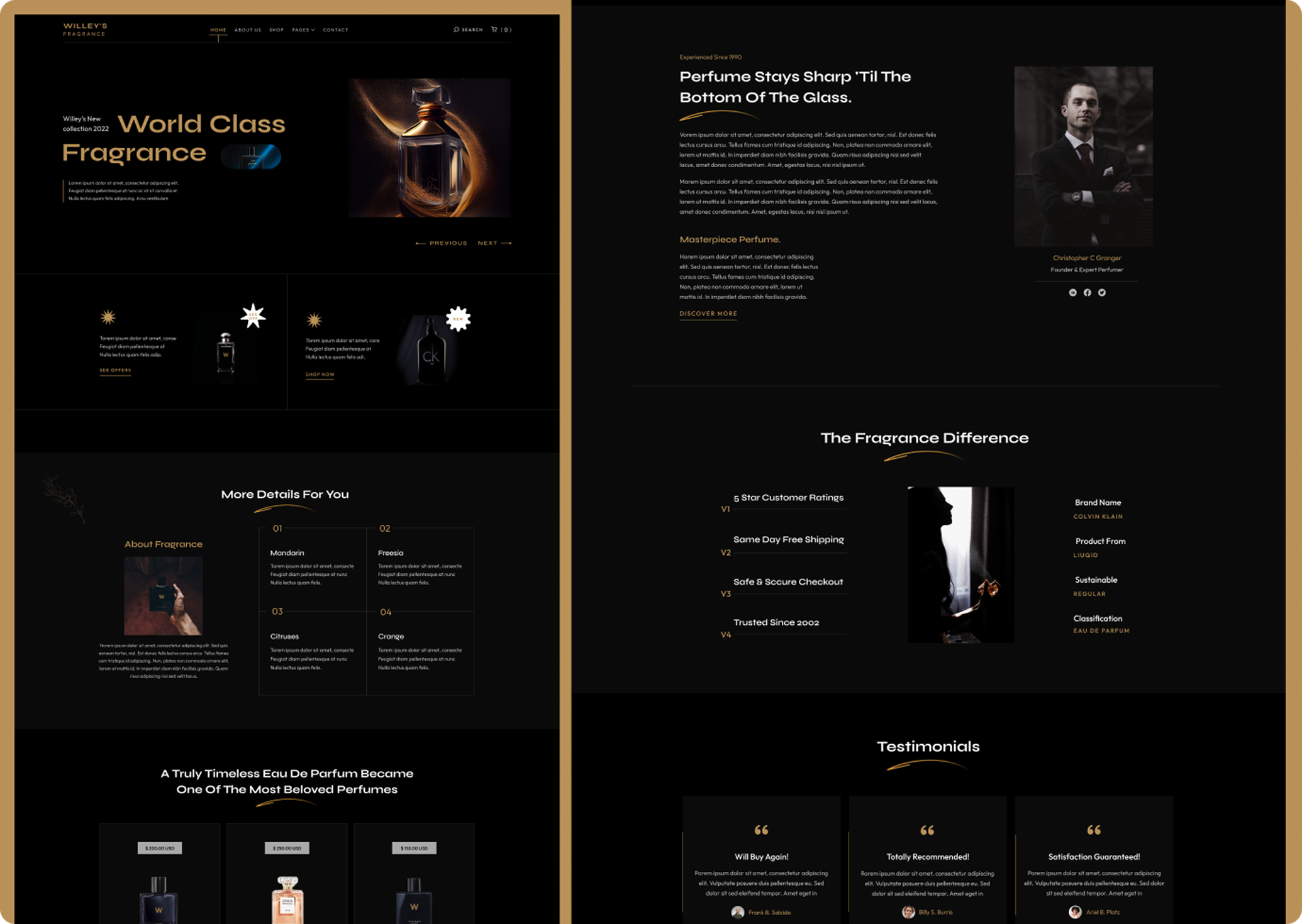 Willey is a Fragrance Webflow template created for online stores selling perfume, flowers, cosmetics, jewelry, makeup, fashion, watch, glass, clothes, women accessories.